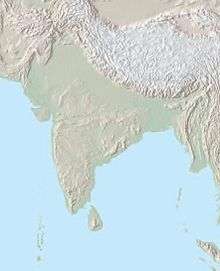 - The landmass south of the Himalayas projecting into the Indian Ocean, sometimes also including nearby islands; the land on the Indian plate.