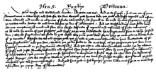 It begins like a transcript, at the top of the page, without the least appearance or form of an intended original : it is written in the common secretary hand of ,the age, which Crawford mistook for a chancery hand; [] .