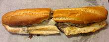 - A Philadelphia snack food consisting of chopped steak and melted cheese in a bread roll.
