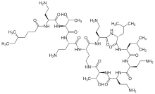 - (medicine) A polymixin antibiotic effective against a range of gram-negative bacteria, sometimes considered a last-resort antibiotic.